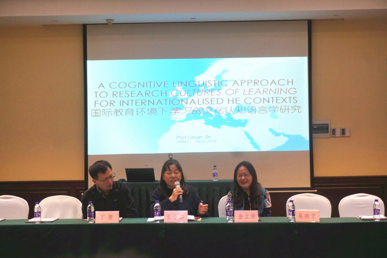 首先,宁波诺丁汉大学的金立贤教授作了题为“A Cognitive Linguistic Approach to Research Cultures of Learning for Internationalised HE Contexts”的专题发言。金立贤教授探讨了学习文化的定义,并以她在中英不同学校的工作经历,展示了学生个体学习文化的差异。她指出诱导式隐喻研究可产出质性和量性的数据结果,适用于研究多种场合的学科人群,如媒体研究、跨文化沟通、语言障碍和商务分析等。