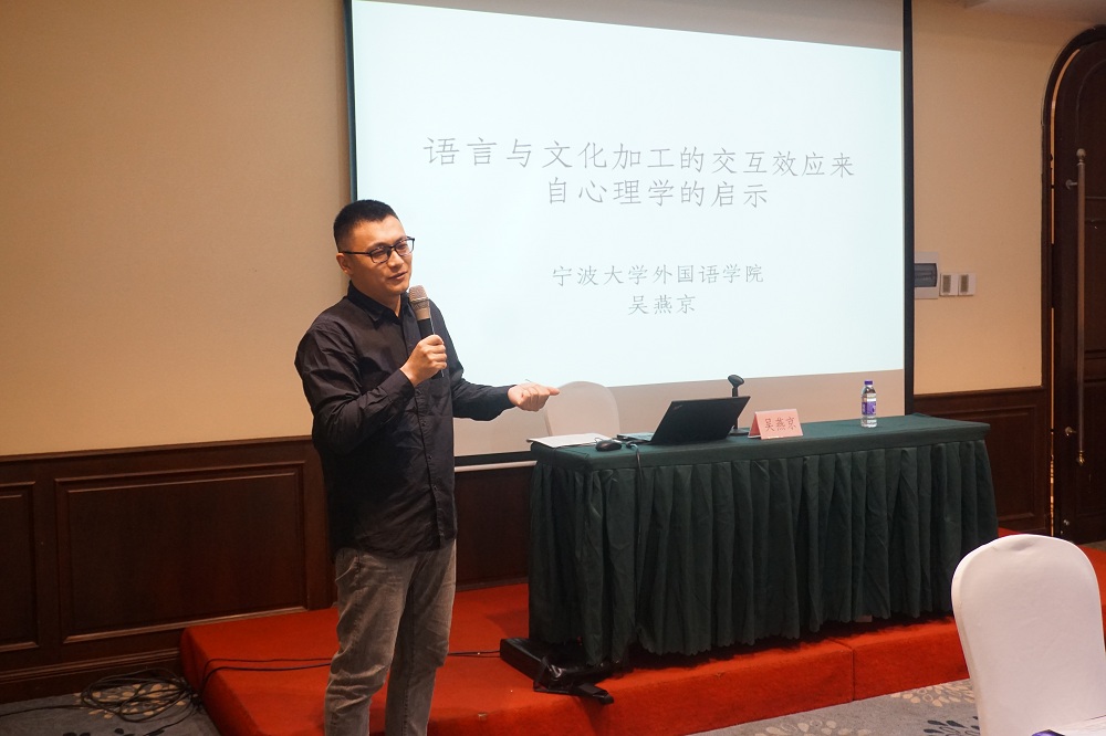 最后,宁波大学的吴燕京教授作了题为“语言与文化加工的交互效应来自心理学的启示”的专题发言。他介绍了语言研究领域内语言与文化的两项实证研究,指出文化环境对第二语言的产出有着显著而深入的影响,但他强调文化语境对二语者的语言理解和产出也有着潜意识的影响。