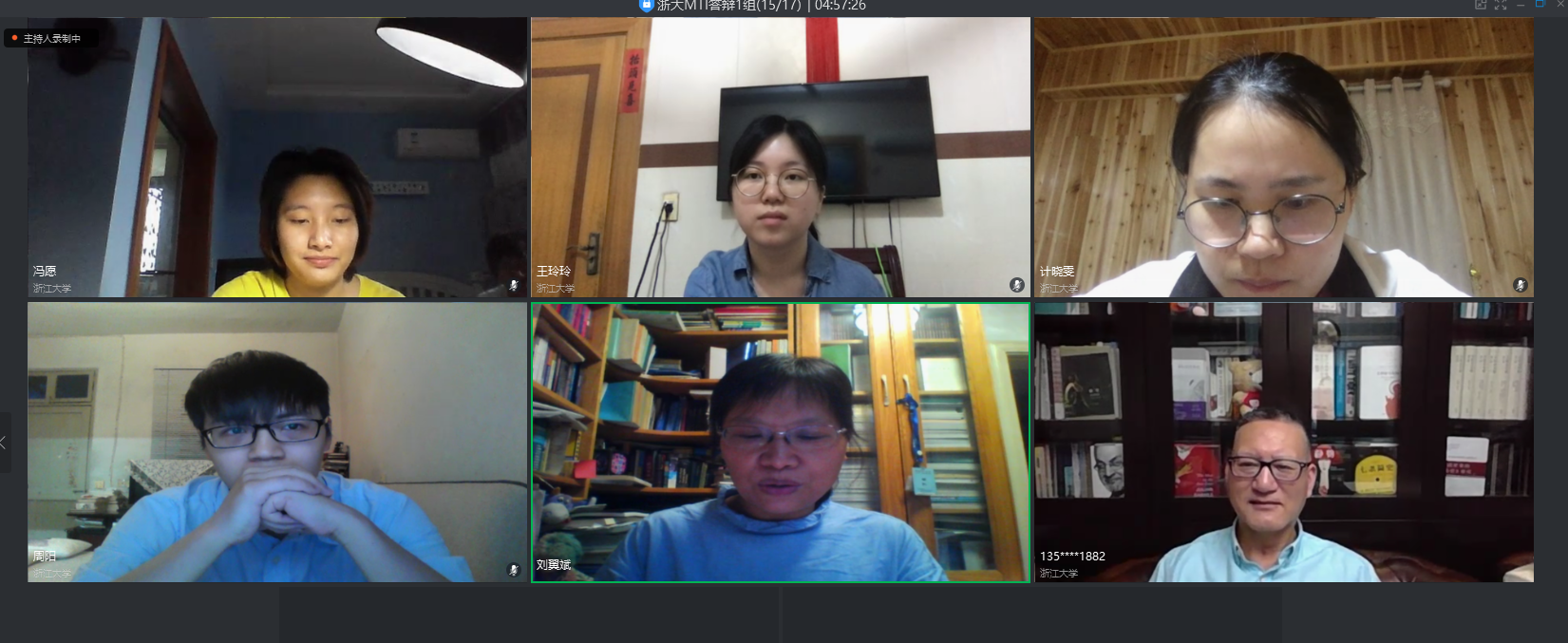近日,浙大宁波理工学院外国语学院与浙江大学外国语言文化与国际交流学院联培研究生,2018级英语笔译专业的王玲玲同学,在浙大钉钉平台上顺利通过在线毕业论文答辩,王玲玲是两校首位联合培养的英语笔译专业硕士研究生,由外国语学院蔡亮教授指导。