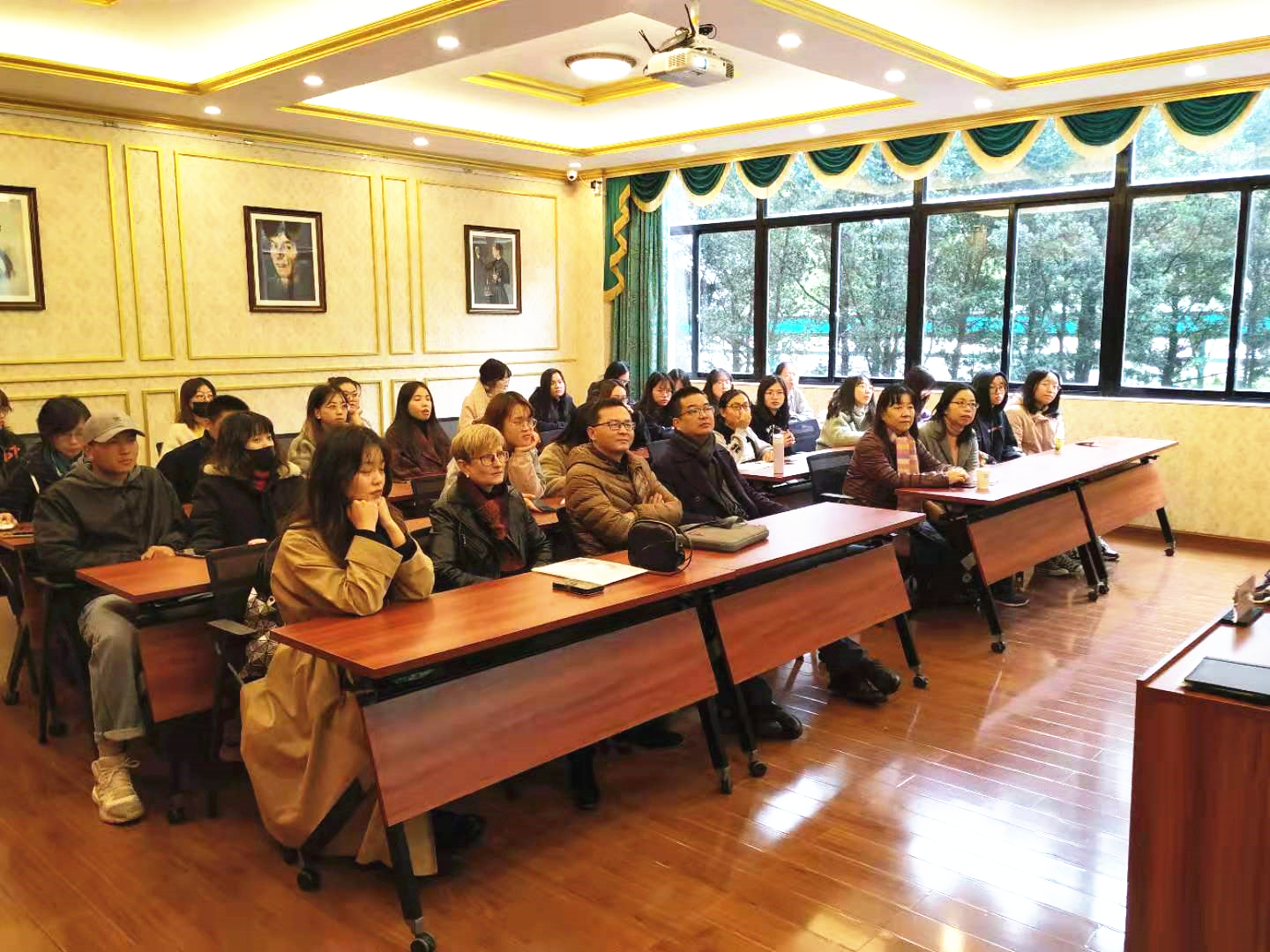 副总领事先生介绍了波兰语言的历史演变以及波兰语的方言现象。他从波兰历史起源的视角,讲述了属于斯拉夫语系的波兰语的拼写、发音、用法等方面的独特性。其讲述过程恰到好处地穿插了波兰语与汉语的比较对比,引起在场师生的浓厚兴趣。不少师生在现场就跃跃欲试,开始练习波兰语发音。