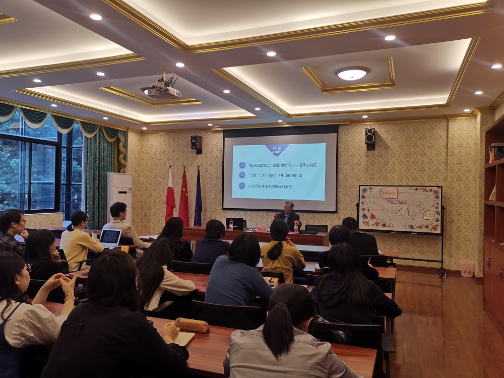 2019年10月24日下午,北京外国语大学英语学院教授、博士生导师张中载先生在浙江大学宁波理工学院波兰研究中心作题为“百年变革中的英语文学(1919-2019)”的学术讲座。本次讲座是随园讲坛第四十二期,由外国语学院副院长周汶主持。