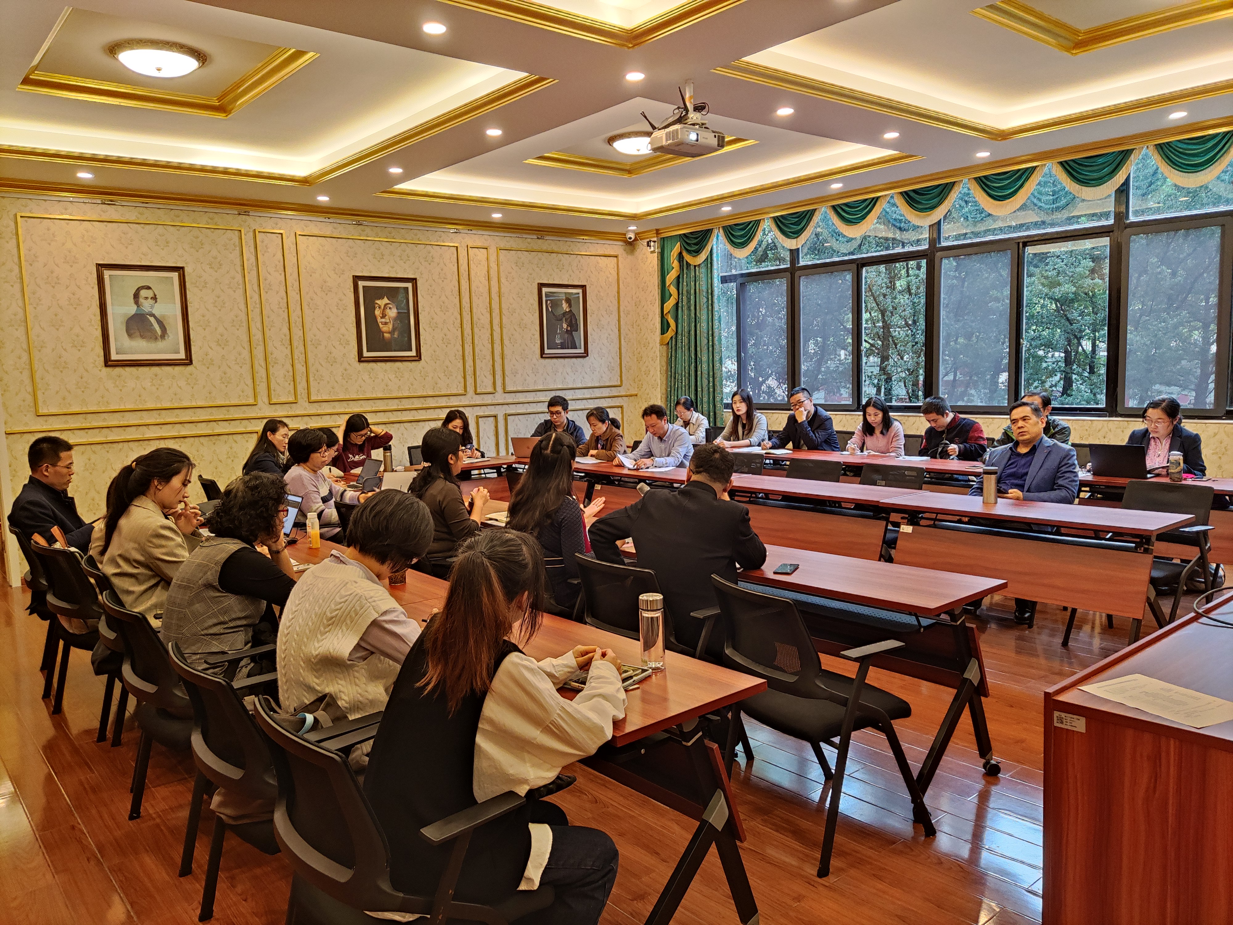 为做好2022年度国家社科基金项目申报,加强各科研团队之间的交流,外国语学院于2021年11月5日下午3:15在SC106波兰研究中心举办国社科申报暨科研团队汇报会。学院院长胡洁、党委副书记(主持工作)傅晓宇出席会议,学院各研究团队负责人、联络人,2022年度国社科预申报人员,新进博士教师等30多人参加了会议。会议由学院副院长蔡亮主持。