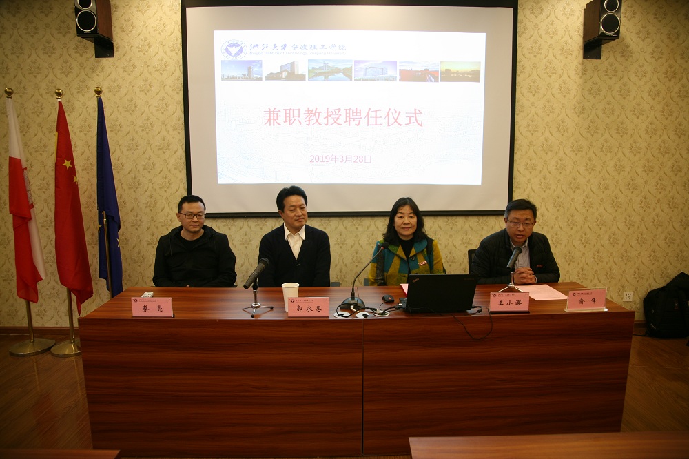 2019年3月28日下午,嘉兴学院郭永恩教授应邀在浙江大学宁波理工学院SC106波兰研究中心为外国语学院日语专业的师生作了《浅议日本人的自我意识--基于日语动词的表达》的学术报告并受聘担任学校的兼职教授。聘任仪式由外国语学院王小潞院长主持,学校人事处俞峰副处长、学院蔡亮副院长、日语专业负责人邓凌志老师等出席了仪式。