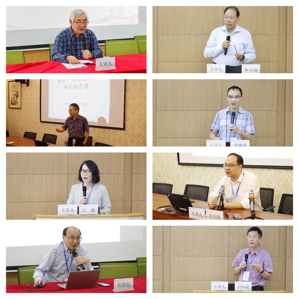 此次研讨会为期两天,由三场主旨报告和三场专题分论坛组成。浙江省社会科学院研究员、浙江省儒学学会名誉会长吴光,敦煌研究院研究员、中国敦煌石窟保护研究基金会理事长杨秀清,浙江大学求是特聘教授、国家民委中亚与丝路文明研究中心主任刘进宝,宁波大学人文学院教授、中国海外交通史研究会副会长龚缨晏,浙江工商大学东亚研究院院长、教授江静,厦门大学外国语学院教授吴光辉,东南大学外国语学院副院长、教授刘克华,浙江海洋大学教授程继红,宁波大学人文学院教授、宁波文化研究会副会长刘恒武,宁波市文化旅游研究院副院长、宁波文化研究会副会长黄文杰,宁波大学日本研究所所长、宁波文化研究会常务理事李广志,湖南科技学院外国语学院副院长、教授何建军等24位专家学者作了发言报告。与会专家学者聚焦敦煌学和天童文化研究,就海陆丝绸之路的时代价值、浙学与多元文明互鉴、浙东文化与东西方文明、浙东文化与港航文明等议题展开研讨交流,探索以敦煌与天童为代表的海陆丝路文化资源宝库以及中华优秀传统文化的创造性转化和创新性发展。