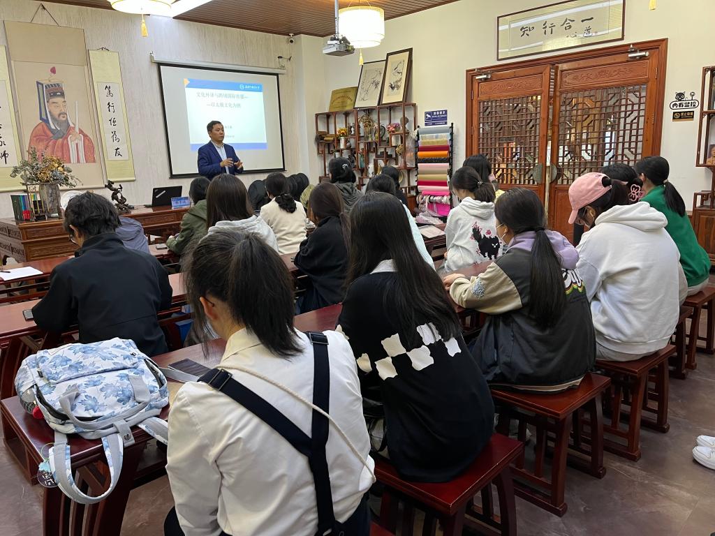 4月17日下午,上海外国语大学韩子满教授受邀来我院SC107阳明学堂作题为“文化跨领域国际传播与文化外译——以太极文化为例”的专题讲座。讲座由外国语学院翻译学研究所副所长查德华副教授主持,学院执行院长蔡亮教授、各研究所老师代表和部分英语专业学生参加了此次活动。