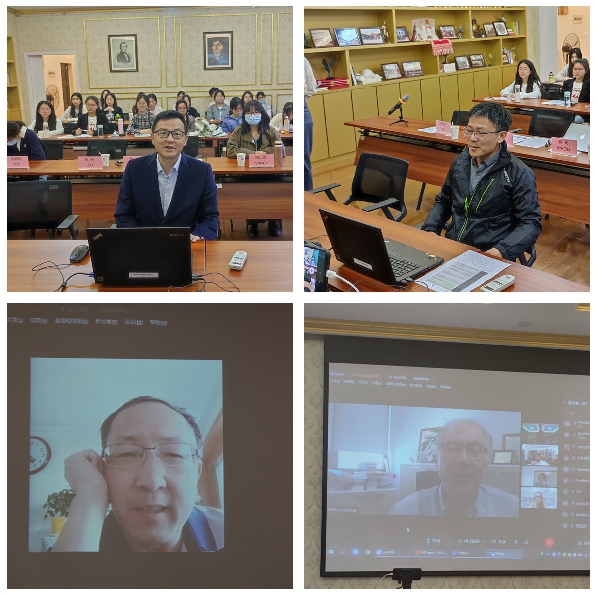 此次活动是宁波市与“一带一路”沿线国家教育合作项目“中国-塞浦路斯希腊文化‘云’对话探索实践”的重要呈现,旨在搭建两校交流的“云”平台,进一步深化校际合作,增进中华文化与塞浦路斯希腊文化之间的交流与推广,共同探索东西文明的复兴与对话。出席此次会议的嘉宾有:浙大宁波理工学院国合处副处长程萌博士,外国语学院副院长蔡亮教授,马克思主义学院古希腊罗马哲学博士龚奎洪教授,塞浦路斯尼科西亚大学教务处长Ioannides Nicolos,学生处处长Myria Thrassou,联合国教科文组织尼科西亚大学首席专家Emilios Solomou博士等。活动由我校赴塞交换生、外国语学院张娅蕊同学主持。
