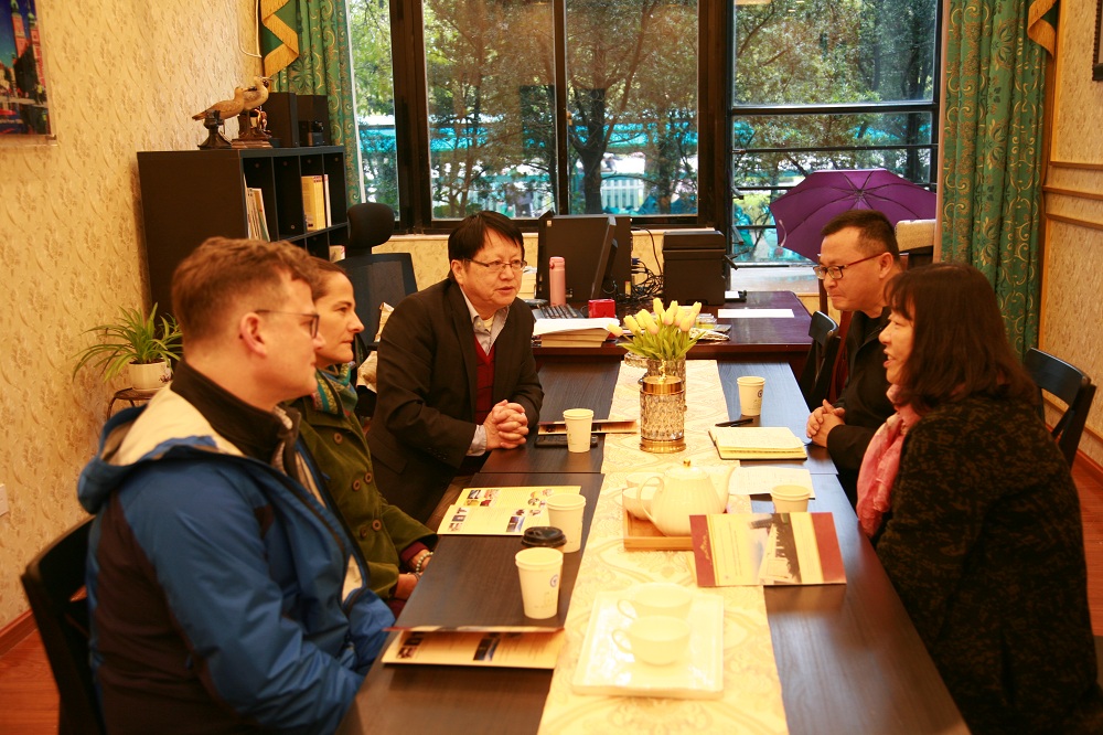 3月14日上午,美国罗切斯特拿撒勒大学主管学术事务副校长Andrea Talentino教授、主管国际项目副校长Nevan Fisher校长及英语语言学院院长、亚太办公室主任宋红专教授等一行来我校外国语学院做交流访问。学院院长王小潞教授,副院长蔡亮教授,负责拿撒勒大学项目的李继宏老师和周维老师等在SC106波兰研究中心接待了来访的外宾。