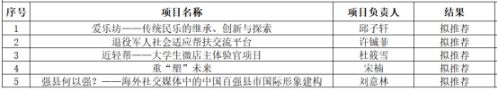 根据《创新创业教育中心关于浙大宁波理工学院第十届“互联网+”大学生创新创业大赛暨浙江省“互联网+”大学生创新创业大赛选拔赛的通知》精神,经学生申报、学院组织评审,拟推荐“爱乐坊——传统民乐的继承、创新与探索”等5项项目参加浙大宁波理工学院第十届“互联网+”大学生创新创业大赛。现予以公示。