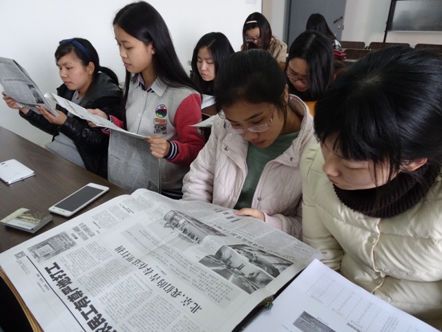 会议首先向每位参会同学下发了一份近期的《中国青年报》报纸,刘杰老师要求每位同学在15分钟内认真通读报纸,并接合当下大学生的实际情况,理解领会报纸新闻反映的时代讯息。15分钟的时间里,大家认真阅读,翻阅报纸的声音更给人一种沉静阅读的体验。报纸阅读完毕,刘杰老师首先与同学们探讨了新媒体时代传统纸质阅读与现代电子阅读的不同,同学们都意识到相比手机阅读,久违的报纸阅读能够让人的阅读不再变得那么浮躁,理解的东西也更加深刻了。随后刘杰老师又与同学针对报纸中提到的“青年创业”、“共青团十七届三中全会”等新闻进行了讨论,促进了团支书们对于共青团工作的了解。