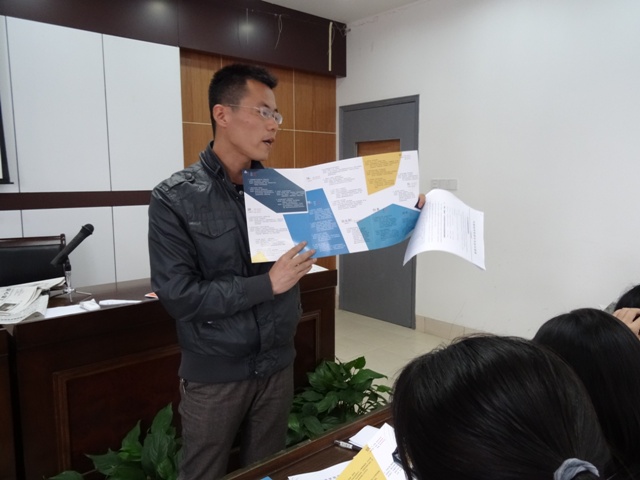 学习会完毕,刘杰老师向全体团支书下发了《爱国·诚信·公益·礼仪·孝悌·浙江大学宁波理工学院2015年全年主题教育实践活动》宣传方案,重点向同学们介绍了校团委关于主题纪念日的各项工作安排。随后刘老师对外语学院2015年的“挑战杯”学术科技竞赛情况对团支书们作了通报,要求大家要认真意识到挑战杯对于同学各项素质提升的重要作用,充分做好挑战杯的宣传、组织、发动工作,引导同学加强与专业老师联系,形成“教师科研项目——学生实践项目——学生学术创新项目——学生毕业论文项目——教师科研支撑项目”的良性循环模式,塑造外国语学院师生科研学术的良好氛围。