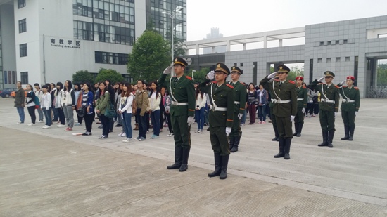 4月21日,尽管晨风微凉,外国语学院的师生们仍准时在学校的国旗下集合,举行了“建设优秀学风•争做求是青年”为主题的升旗仪式。外国语学院辅导员刘杰老师以及2012、2013级全体学生参加了本次升旗仪式。