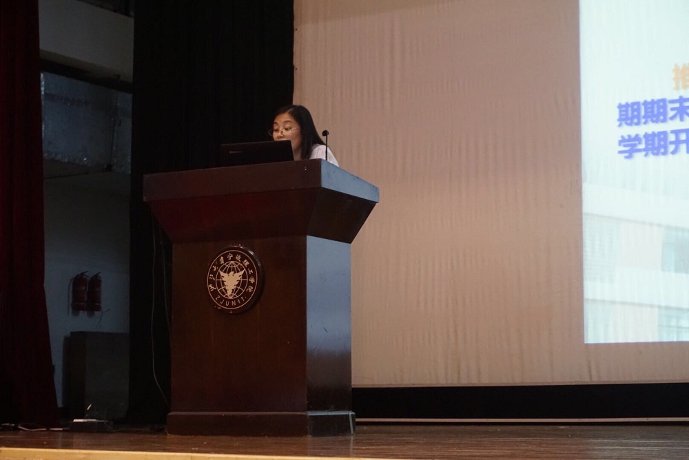 讲座伊始,由外国语学院何老师介绍了学校选课的相关内容。何老师对新生何时选课,如何选课以及所选课程计分方法及考核标准作了详细的介绍,让新生们对学校课程制度有了更深的了解。除此之外,何老师还对学校的立交桥、转专业等事项进行了详细解说。