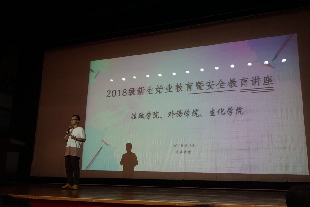 9月26日下午,2018级新生始业教育暨安全教育讲座在可珍讲堂举行。本次讲座旨在让学生进一步地了解学校教学相关内容和安全防范知识。参加讲座的主要有外国语学院、法政学院和生化学院的2018级新生及各学院的思政主管。