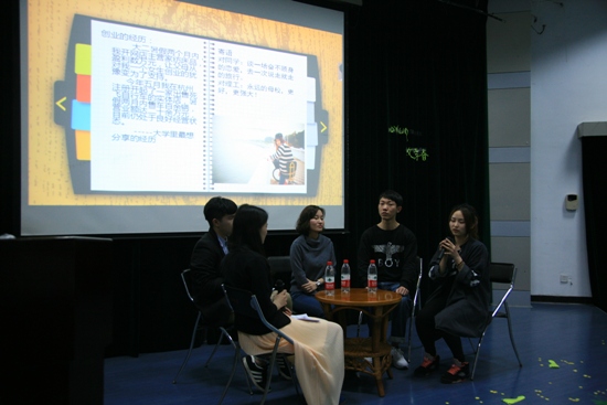 在“工作•生活”篇章,英语101班张佳丽同学则以自己创业经历为大家讲述了一个别样的青春成长故事:从网上开淘宝店出售纺织品赚得第一桶金到回家乡开办时尚自行车实体店,张同学的创业大变身令很多同学羡慕不已,但其创业过程中面对困难的勇气与坚持更令人敬佩。与此同时张同学还即将到香港大学读取研究生,她的精彩或许用他自己的话来讲最为中肯:“吃得苦中苦,方为人上人。将所学的转化为所用的,才是我们读大学的真正价值所在。”