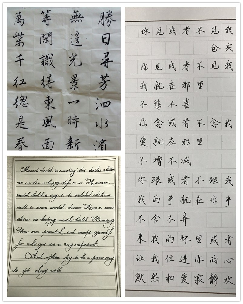 据活动负责人日语161班南佩佩同学介绍,本次比赛特点鲜明,亮点突出。一是将书法学习与心理教育相结合,形式新颖,寓教于乐。二是活动参与度广,来自全校九个学院的同学都参与其中,深受学生热捧,其中,传媒学院网新152班王宣、信息学院电信152班陈钊两位同学分别摘取中文硬笔、中文软笔一等奖。三是体现外国语学院专业特色,设置花式英文书写专项,如本次花式英文一等奖获得者英语161班叶权同学的作品字迹优美洒脱工整,堪比印刷体,让不少同学直呼太“逆天”,引来一片膜拜。