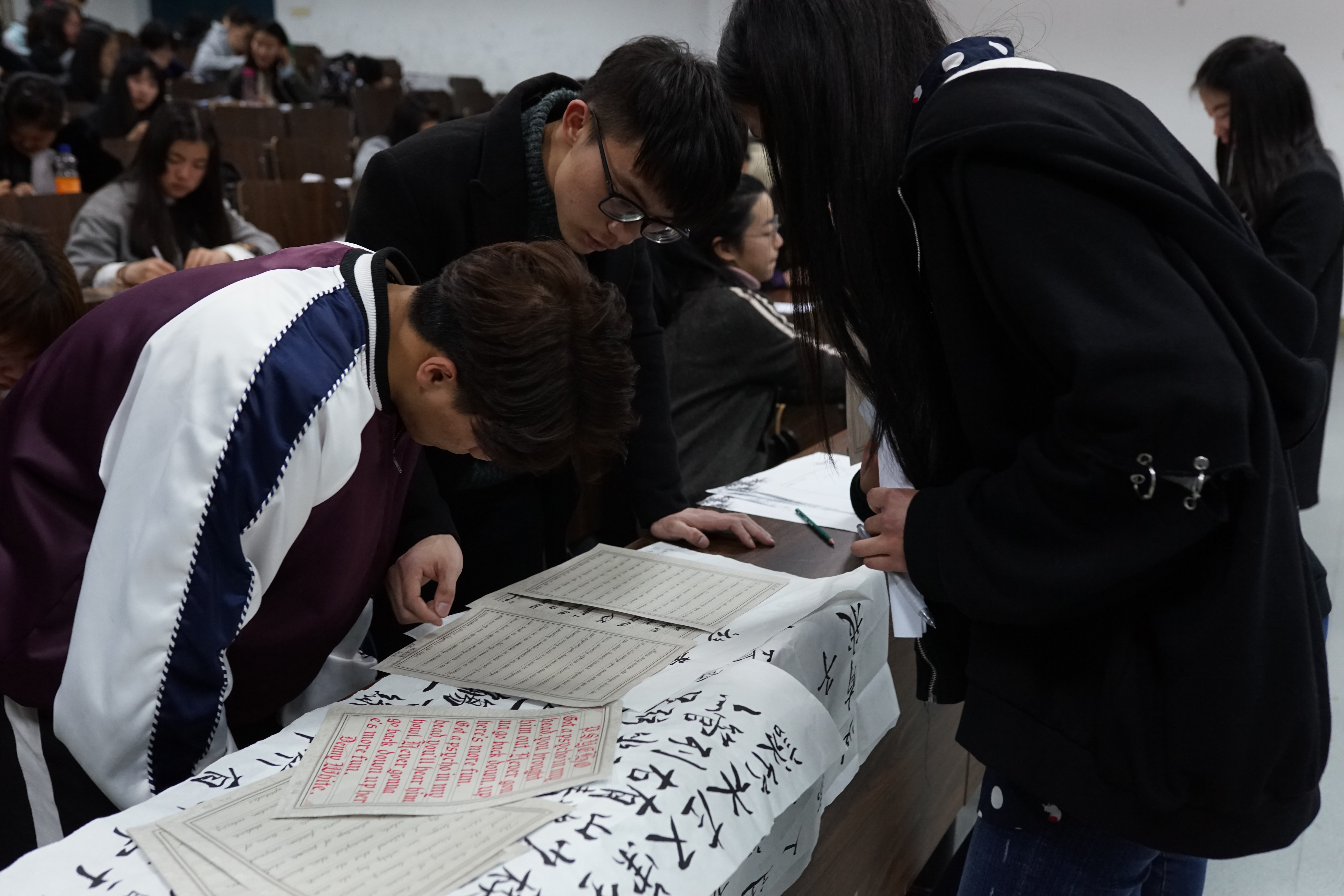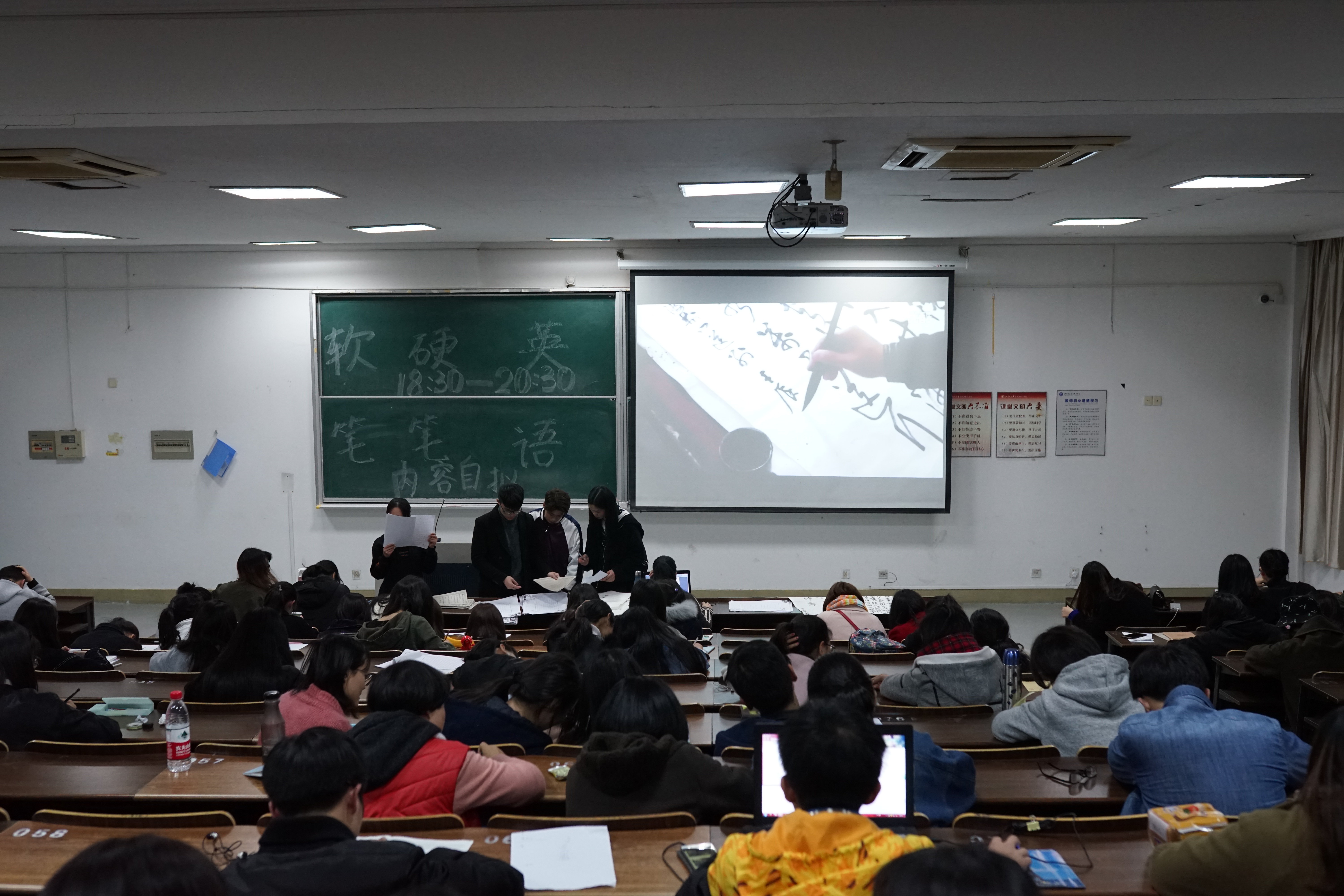 汉字是中华民族的文化瑰宝,练习书法也有助保持良好的身心健康,素有“心手相通,字如其人”的说法。3月27日晚,外国语学院心理书法大赛决赛在SC115举行,活动将书法学习与心理教育有机结合,达到“字塑其人”的效果,旨使“练字”成为校园内独特的文化景观。