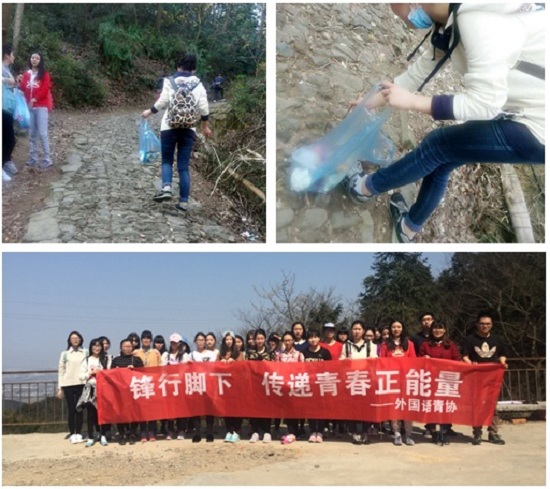 三月春风拂甬城,雷锋精神暖人心。在春暖花开的雷锋月期间,外国语学院青协的志愿者们开展绿色出行活动,沿途爬山,欣赏横溪古街美景,锻炼吃苦耐劳毅力,弘扬雷锋精神,并为环保贡献自己的力量。