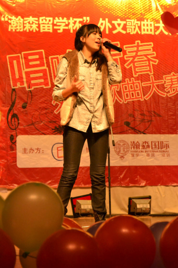 比赛开始,选手们一起合唱了《you raise me up》,合唱磅礴的气势,优美的旋律立刻点燃了现场观众的热情, 其后便开始了紧张激烈的角逐。来自经贸学院的俞景潇以正红火的韩国歌曲《江南style》和俄罗斯歌手Vitas的名曲《opera 2》high翻了全场,其精湛的表演、华丽的嗓音引起了台下观众的阵阵掌声,获得了评委和观众的一致认可,一举夺得桂冠。其他参赛选手也可圈可点,他们精准的发音、多变的曲风以及大气的表演,为当晚的观众呈现了一场难忘的视听盛宴,最后来自外国语学院的纪严杰和张天宇同学分别夺得亚军和季军,最佳台风奖与最佳口语奖分别有刘亦晨与王璐璐获得。