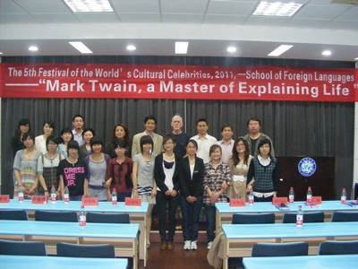 叶琴法副院长在开幕致辞中提到名人周这样的学术活动在培育校园文化、提高同学们人文素养等方面发挥了重要作用,也为广大的师生提供了学以致用的平台和机会。他希望我们能在马克. 吐温的文学作品中,寻找内心的启迪和生命的感怀,从马克吐温的幽默中看人生百态,感知他的生命情怀,共同走进我们心中的马克吐温。