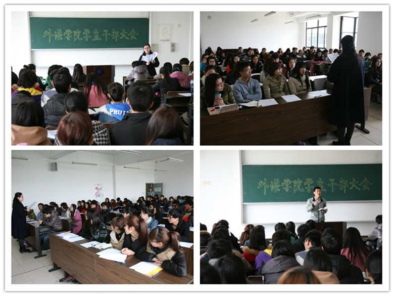 会议最后,刘杰老师对近期学院团学的工作进行了安排,并对学校创建“食堂文明工程”做了激情洋溢的演讲,希望外语学院同学都能在自我约束的小细节中彰显自我超越的高素质。会议在大家热情的掌声中圆满结束。新学期新气象,相信外语学院的学生干部羽翼会更丰满,施展才华的天空会更宽广!