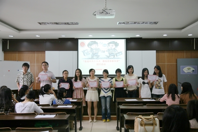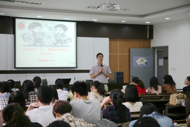 5月25日下午,“喜迎十八大 青春展风采”主题团日活动成果交流会在SC405举行,外语学院团委书记李炜,团委副书记胡琼琼参加了交流。