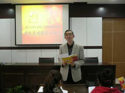 培训会上,盛老师首先就党建联系人的培训目的及其重要性作了阐述,并详细地讲解了党建联系人的工作职责。接着,盛老师结合当前学生党员发展工作中存在的问题,谈了如何发挥党建联系人作用的几点看法,提出了下一阶段党建联系人必须着力做好的几项工作。最后,盛老师与大家一起探讨了一些在实际工作中遇到的问题。