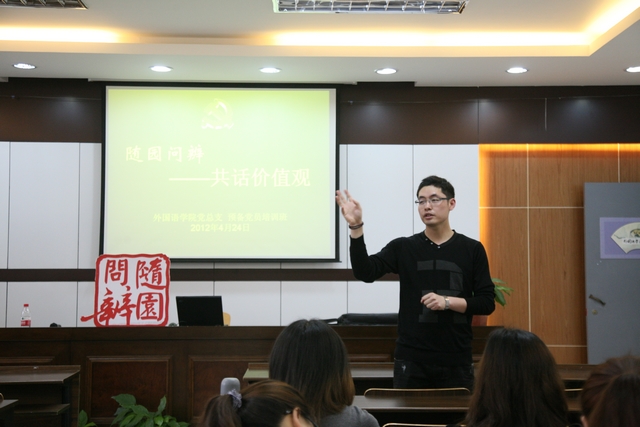 4月24日下午,外国语学院党总支“随园问辨”学生党员学习论坛在SC405举行。本期论坛的主题是“谈谈我们的价值观”。