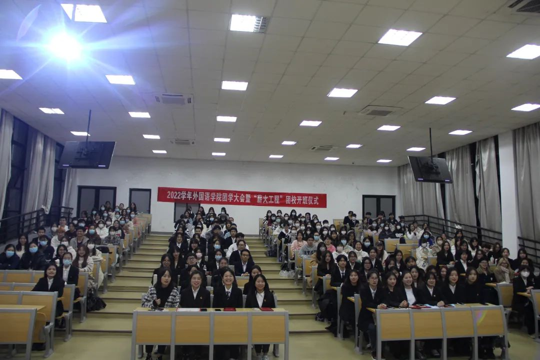 2022年11月29日晚,外国语学院团学大会暨第十一期团校开班仪式于SB104顺利进行。学院党委副书记任凯老师,党委委员、兼职辅导员胡海鹏老师,团委副书记洪雨菲老师、思政副主管阮佳蒂老师、外院班助及团学各组织成员等参加此次大会。