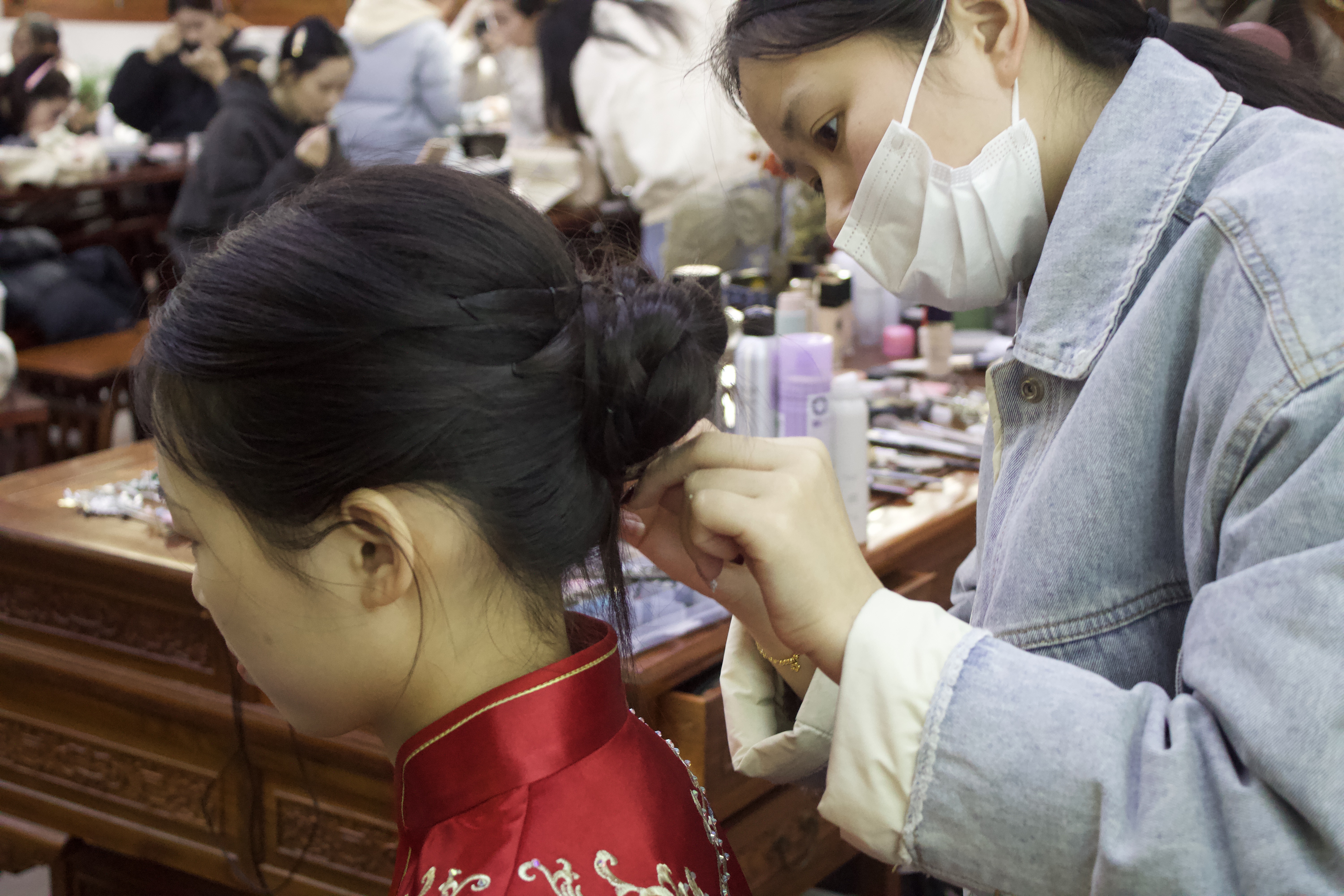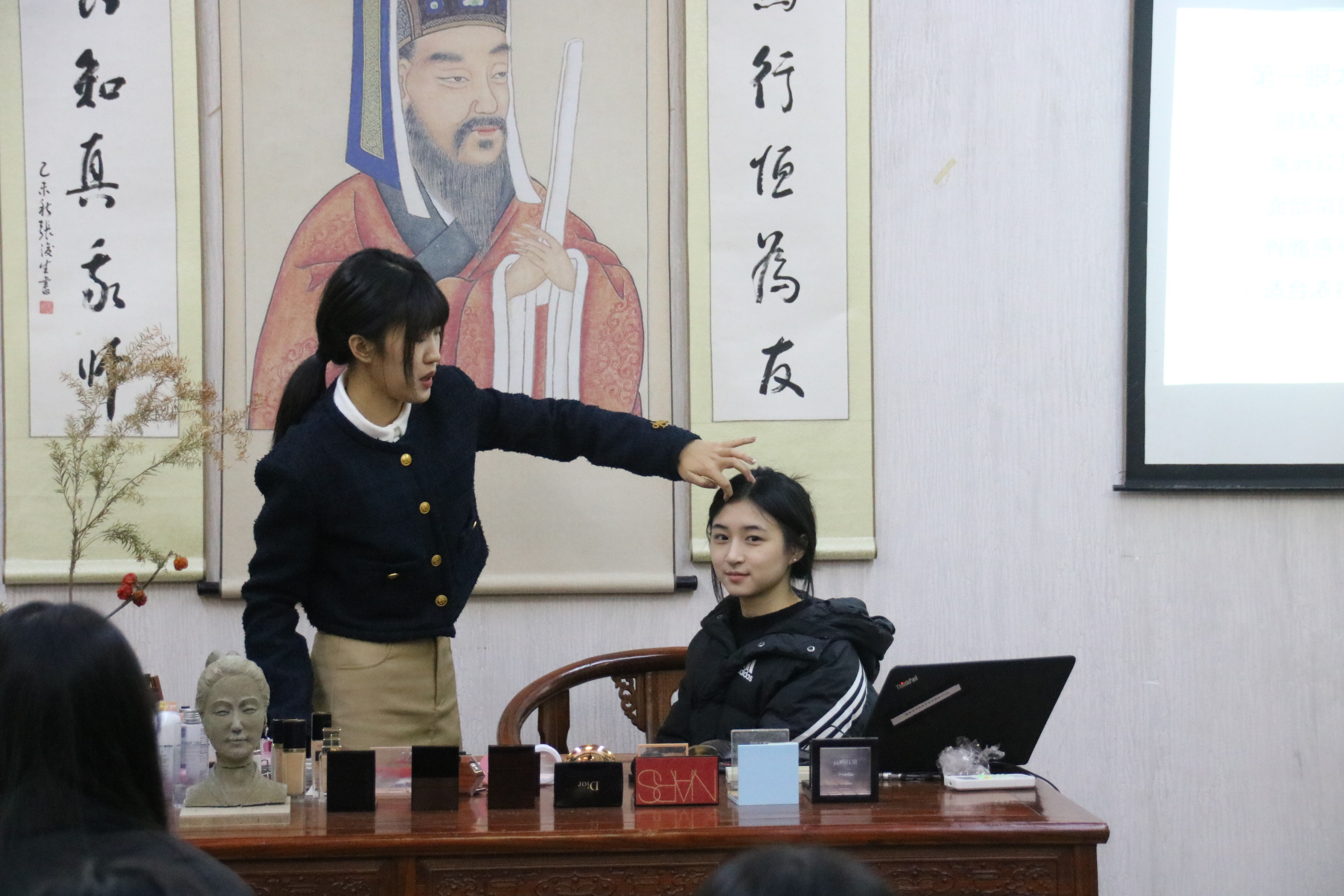 本期形象美学专班由团委、教务处、宣传部、招就处、外语学院联合建设,分别围绕“化妆风格审美认知”、“生活妆要点指导与体验”、“古典妆容认识与体验”、“古典盘发认识与体验”、“职业妆要点指导与体验”五个主题展开。学校党委宣传部部长李炜老师、招就处副处长张硕老师、外语学院思政主管芦美丽老师参加了活动。希美造型工作室创始人、鲸宝集团合作化妆师姚叶青女士为26名博雅课堂学员带来了为期2天的形象美学讲座,通过理论讲解、现场演示、实践体验,指导各位学员求职面试妆、日常妆及整体形象设计等实用化妆技巧,提高大学生发现美、传承美、创造美、展现美的能力,加强学生对传统美、健康美的认知。