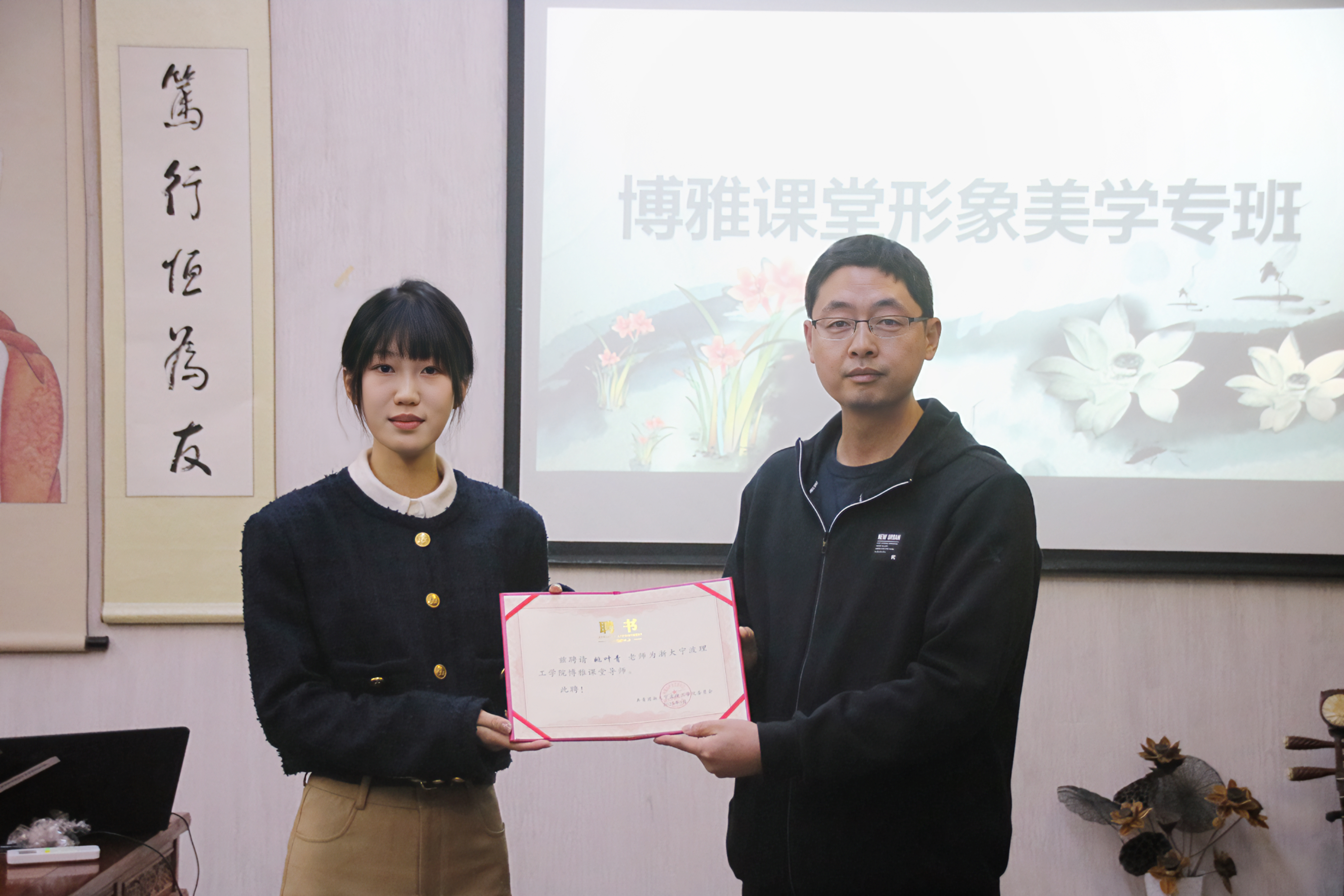 李炜在结业仪式上讲到,开展博雅课堂,旨在引导大学生形成“博文约礼、雅人深致”的价值追求,促进青年学生自觉成为中国优秀文化的传承人、践行者,通过本期形象美学专班,希望同学们在追求“外在美”的同时,注重“内在美”的培养,将“养眼”与“润心”结合,内外兼修,将对美的追求融入大美之心、落于大美之行。