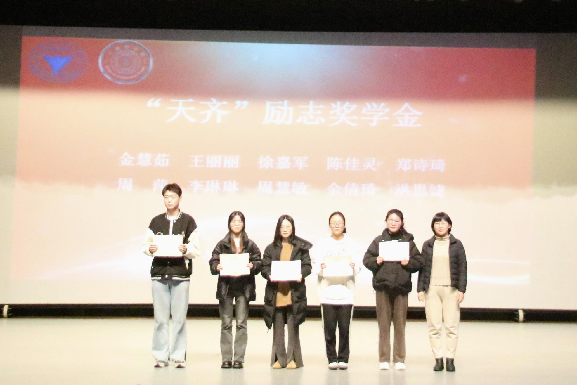 外国语学院思政主管芦美丽老师为天齐励志奖学金获得者颁奖,徐嘉军同学作为学生代表发表演讲。在讲话中,徐嘉军向学弟学妹们传授了宝贵经验,诉说了青春年华,应用奋斗照亮人生,使人生灿烂如星河,唯有努力才能在回首时看到星光璀璨。