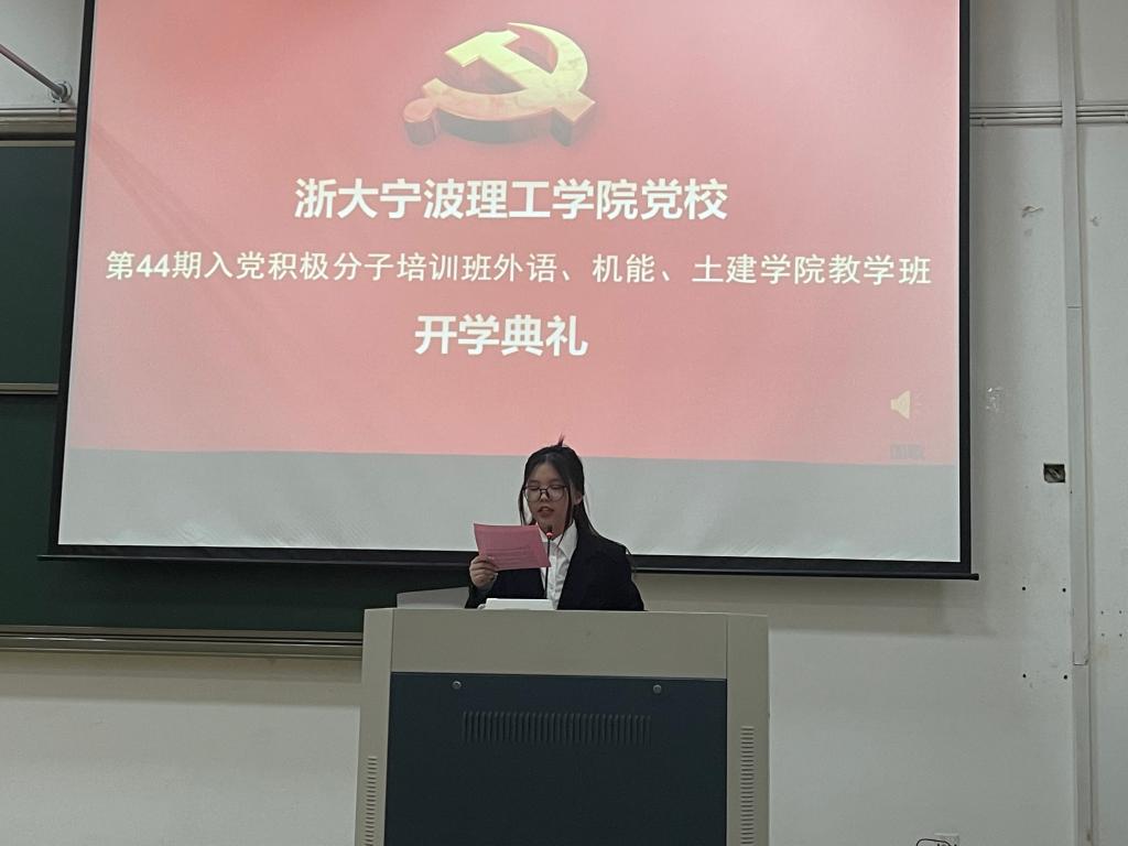 为深入学习贯彻党的二十大精神,切实做好入党积极分子的培养教育工作,充实党员队伍后备力量,4月7日傍晚,外语学院、机能学院和土建学院党委在SB104教室联合举行党校第44期入党积极分子培训班开学典礼。外语学院党委副书记、纪委书记任凯,机能学院党委副书记、纪委书记林建英,土建学院党委副书记、纪委书记邬旭东,土建学院思政副主管曹燕等出席了开学典礼。活动由外语学院思政主管芦美丽主持。