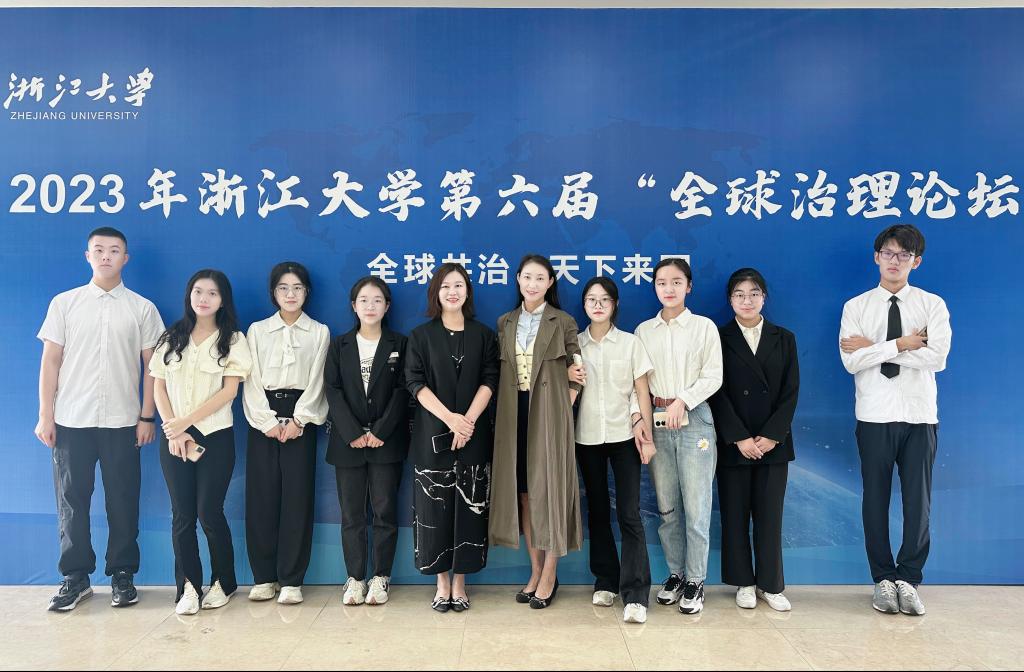 2023年浙江大学第六届“全球治理论坛”于5月5日至5月7日在浙江大学举行,浙大宁波理工学院招生就业处副处长张硕和外国语学院院长助理林晶晶两位老师率9名学生代表,受邀并参加了论坛开展的全球治理专题讲座、青年圆桌论坛、模拟联合国、生涯规划进学园和进课堂、全球治理校际交流会等系列活动。原外交学院党委副书记兼副院长郑启荣教授、浙江大学外国语学院院长董燕萍教授、浙江大学外国语学院李媛教授、国际组织的官员WadaMami和RobertParua、省内外部分高校的相关负责人、国精班导师作为嘉宾出席此次论坛,来自浙江大学、西安交通大学、东南大学、苏州大学、浙大宁波理工学院、浙大城市学院及浙江外国语学院的同学受邀参加,共同探讨全球治理这一议题。
