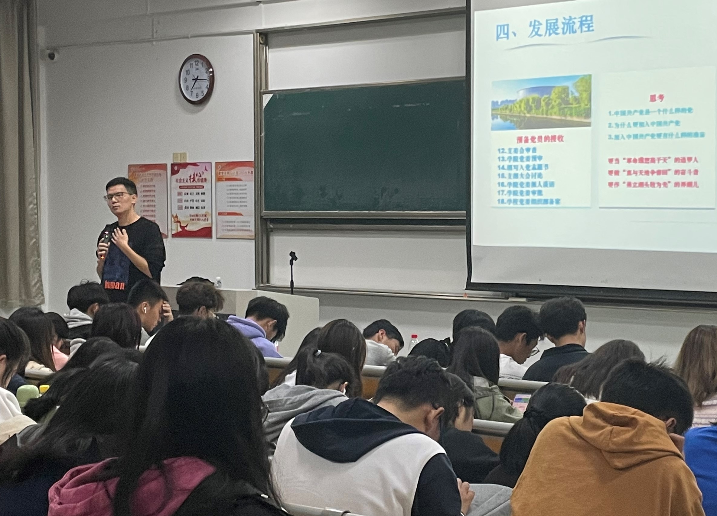 宋老师以“建校简史”为开头,向同学们讲述了20年来学校的发展历程,并介绍了学校党委和行政的组织架构,帮助同学们深入了解学校的各级组织。随后他针对党员发展的各个环节做了细致的讲解,为同学们带来了精彩的入党指南。宋汉文老师以真挚的言语教育同学们注重个人言行,时刻以学校为荣,做一位爱校之人,也激励同学们要做“革命理想高于天”的追梦人、“直与天地争春回”的奋斗者、“勇立潮头敢为先”的弄潮儿,只有这样才能够为入党做好准备,才能做到真正的思想入党。