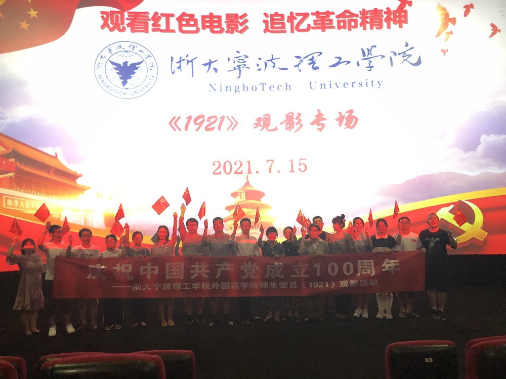为进一步推动学院师生深入学习习近平总书记“七一”重要讲话精神、庆祝中共共产党成立100周年、推进党史学习教育向深向热,7月15日晚,外国语学院组织师生党员40余人前往鄞州万达影城集体观看爱国主义电影《1921》。学院党委副书记(主持工作)傅晓宇、党委副书记任凯参加了活动。