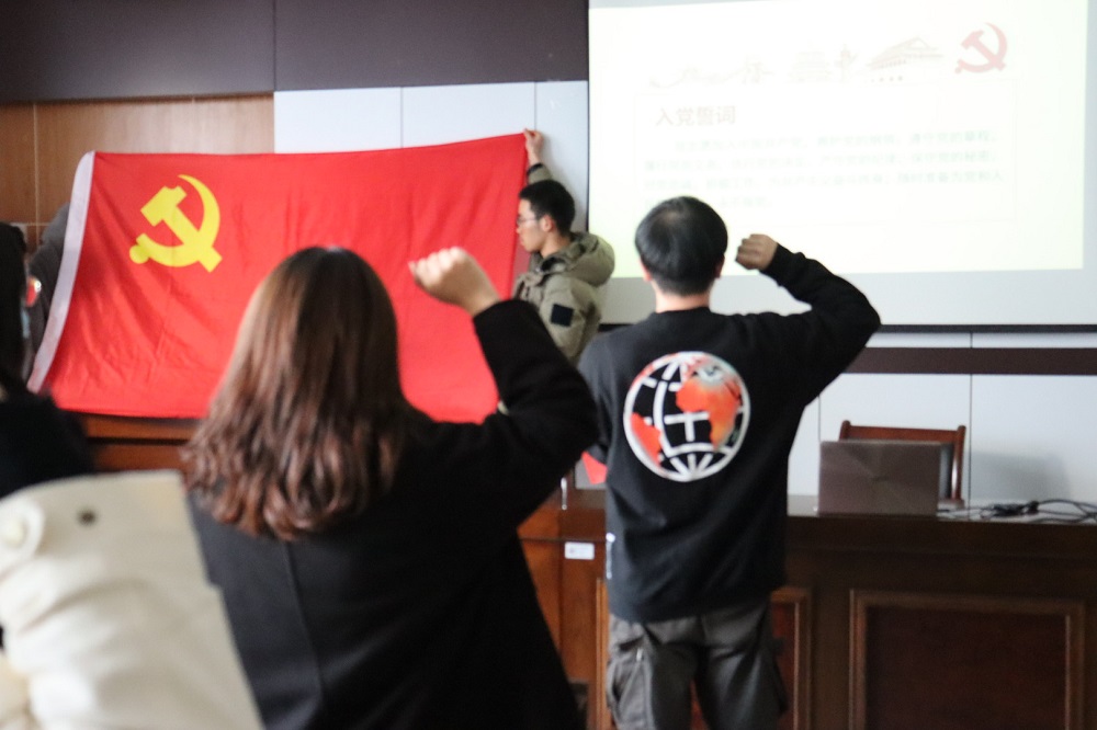 12月25日下午,外国语学院新党员入党宣誓仪式在SC405教室举行。学院党委副书记任凯老师、组织委员芦美丽老师和全体学生党员参加了此次活动。