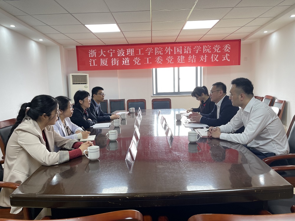 为庆祝建党100周年,进一步增强基层党组织的创造力、凝聚力和战斗力,4月23日早上,外国语学院党委副书记(主持工作)、副院长傅晓宇与江厦街道党工委书记陶宁在江厦街道党群服务中心签订了党建共建协议。