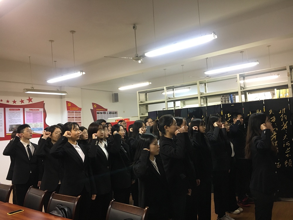 12月24日晚,外国语学院在SC408党员之家举行了2019年预备党员入党宣誓仪式,学院学生党建联系人、学生第一党支部书记芦美丽,学生正式党员代表和33名预备党员参加了入党宣誓仪式。
