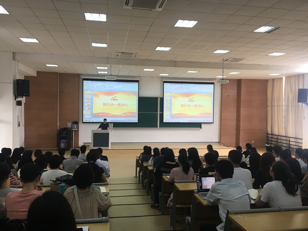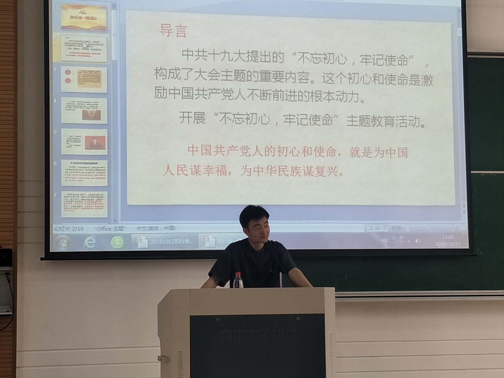 为持续深入开展“不忘初心 牢记使命”主题教育,10月11日下午,外国语学院党委联合计算机与数据工程学院党委邀请中共宁波市委党校文化和统战理论教研部副主任郭美星副教授在SB102教室以《知行合一践初心》为题为全体师生党员讲授了一场专题党课,受到了大家的热烈欢迎。