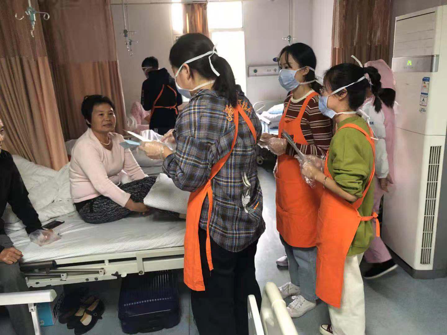 为期两天的活动内容主要是帮助有需要的老人们更换床单,测量血压,给老人们讲解宣传单上防摔倒、如何进行化疗后的饮食养护等内容。此外,同学们还帮助病人灌热水,核对床头病历卡等,他们的耐心和细心也得到了病人和家属的好评。