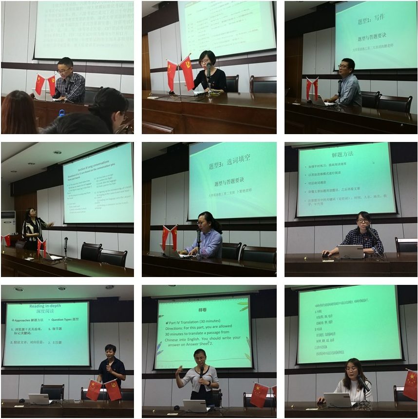 应用语言研究所教工第二党支部一直相互精诚合作,坚持以“服务群众”为宗旨,努力在课堂内外为学生成长提供引导和支持。本次讲座也体现了支部的这一传统:九位老师每人负责一个板块,介绍了大学英语四级试卷的结构和流程、词汇学习、以及各种题型(写作、听力、选词、长篇阅读、深度阅读、翻译和口语)题型的解题技巧,其他老师则负责做好后勤服务和宣传报道。讲座最后还提供了支部老师们共同参与的理工英语学习者QQ群二维码,以便将来在网上继续为同学们提供长期的答疑服务,现场学生纷纷扫码加群。