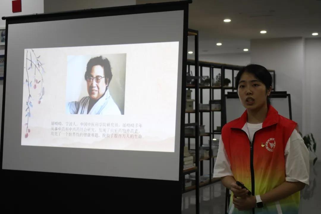 学生党员蔡双霜介绍了“宁波女儿”屠呦呦院士的故事,展现了以屠呦呦为代表的科技工作者用自己的担当与忠诚、智慧和才能、奉献和牺牲,谱写的一曲曲心有大我、至诚报国的爱国奋斗赞歌。 “志不立,天下无可成之事”,学生党员曾靖钧以我院校园特色文化品牌阳明学堂和阳明先生的传奇事迹为宣讲素材,希望党员同志们把握自己的正确定位、找准前进的目标方向、不忘初心、继续前进。随后,学生党员罗茜茜结合自己的专业特色,以互动的方式为所有党员们讲解了 “The 70th anniversary of the founding of the People's Republic of China(新中国成立七十周年)、Remain true to our original aspiration and keep our mission firmly in mind(不忘初心,牢记使命)、The Thought on Socialism with Chinese Characteristics for a New Era(新时代中国特色社会主义思想)、A nation will prosper only when its young people thrive(青年兴则国家兴,青年强则国家强)等相关的党建英文,让社区党员群众“涨知识了”。学生党员陈鑫瑜与文华社区的全体党员分享交流了“我在宁波奋斗”的故事,与会同志们围绕宁波智慧交通、环境美化、教育优化等主题积极发言,气氛热烈。活动尾声,主持人张喆介绍了爱国主义歌曲《我和我的祖国》,表达个人和祖国之间息息相关、血肉相连的关系,并以中英文形式进行了歌曲献唱,歌声优美,情感真挚,打动人心。