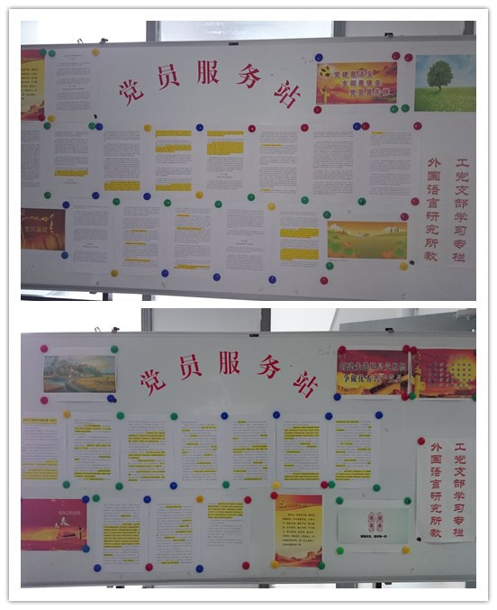 “党员服务站”是党员学习的场所,是基层党组织宣传党的最新方针政策的阵地,是展示党员形象的园地。外国语言研究所教工党支部党员服务站自2015年秋冬学期开学以来,陆续推出的学习《中共十八届五中全会公报(全文)》、《中国共产党纪律处分条例》、《党风廉洁自律准则》的系列宣传为端正党员形象、党的形象做出了行为示范。党员服务站成为党员学习教育和工作交流为一体的综合平台,支部全体党员开拓了视野,提高了政治思想觉悟和素质,加强了自身的党性修养,促进了工作的积极性。