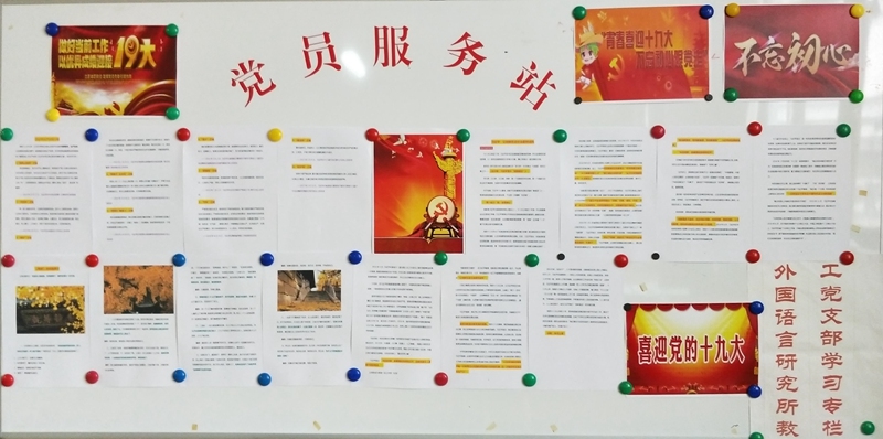 外国语学院外国语言研究所党支部党员服务站继续为广大师生服务,本期提供中国共产党第十九届中央委员会第一次全体会议公报、十九大报告中最新的聚焦——八大改革着力点,以及习近平同志在十九大报告中提出的“四个更”,激发全社会创造力和发展活力,努力实现更高质量、更有效率、更加公平、更可持续的发展。党员服务站帮助引领教师党员和学生党员深刻领会新时代中国特色社会主义思想的精神实质和丰富内涵,深入学习贯彻党的十九大精神,在学懂上下功夫,在弄通上下功夫,在做实上下功夫,使党的十九大精神成为推动党和国家事业发展的强大思想武器,激励党员教师鼓足干劲为实现党的十九大确立的目标任务而奋斗。通过学习,展望未来,教育事业是干出来的,尽管前行路上困难多多,但只要坚定信心,深化教学改革,狠抓落实、埋头苦干、真抓实干,不忘初心、继续前进,中国高等教育必将在新的一年稳中求进,开创新局。
