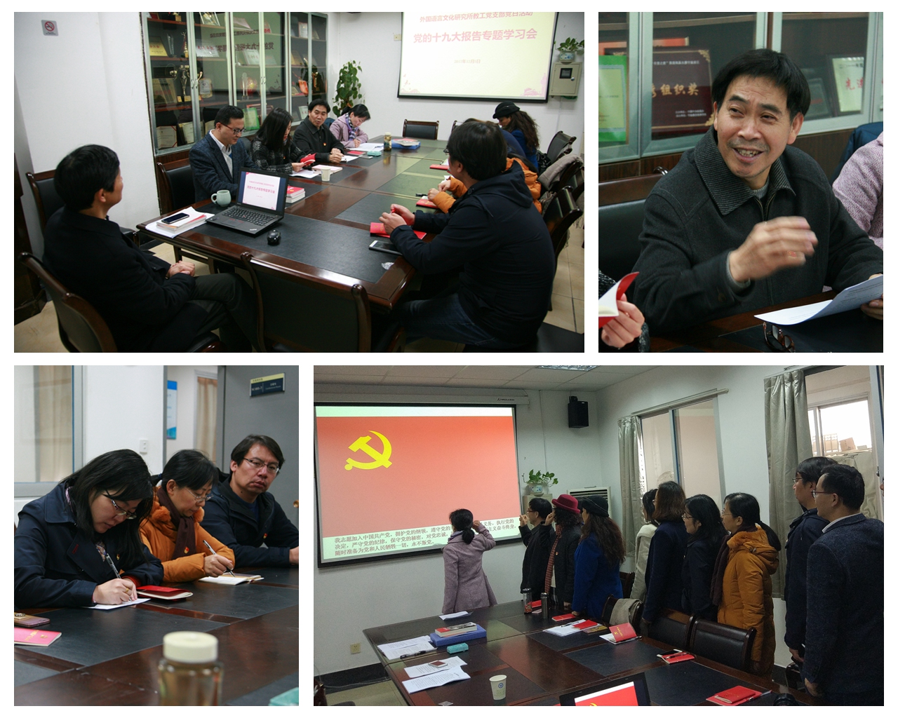 12月5日,外国语言研究所教工党支部在支部书记魏健的带领下在SC403开展学习“十九大”会议精神的党支部全体会议,会议由魏健老师主持。