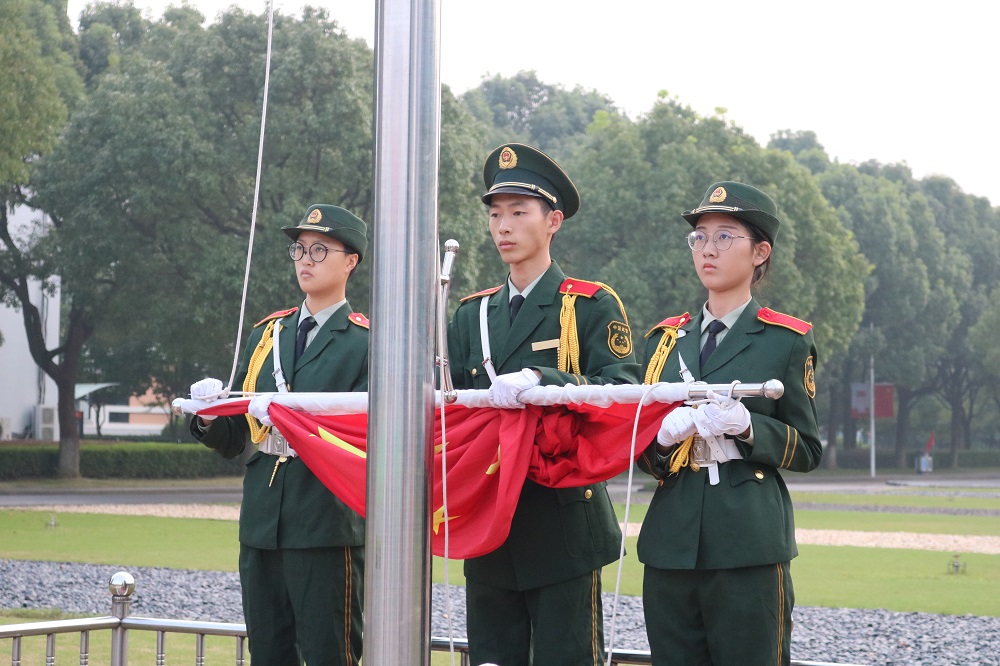 9月30日清晨在浙江大学宁波理工学院西门国旗台前,外国语学院举行“庆祝新中国成立70周年”主题升旗仪式。学院党委副书记傅晓宇、党委副书记任凯、学工办全体老师、学院全体党员以及2019级全体新生参加了此次升旗仪式。升旗仪式由高永悦主持。