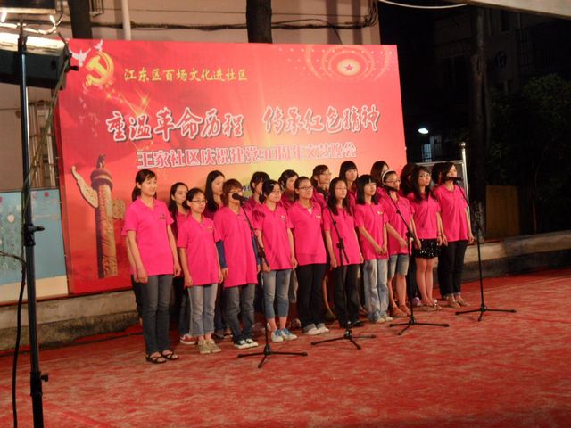 6月14日晚,外国语分院20多名学生党员和英语09级3班的同学们组成红色宣传队走进王家社区,为宁波海军干休所江东分区的爷爷、奶奶们带去了一场以“重温革命历程,传承奉献精神”为主题的庆祝建党90周年文艺联欢会。