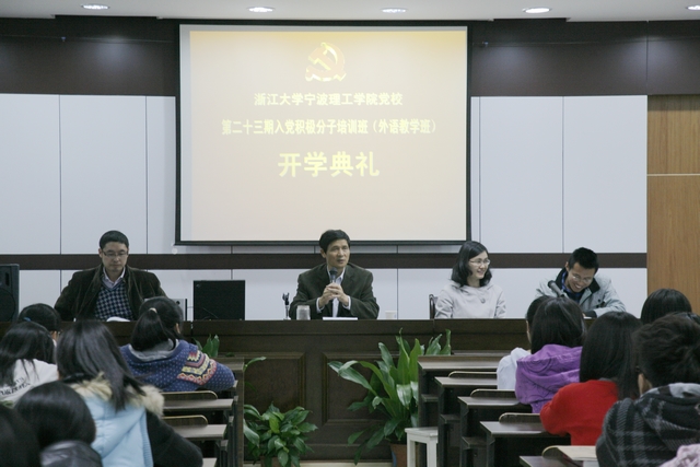 在举国迎接党的十八大胜利召开之际,外国语学院第二十三期党校入党积极分子培训班开学典礼于11月6日晚6时在SC405举行。学院党总支书记谌晓煜、党总支委员方芳、团委书记李炜和学生第二党支部书记刘杰等多位老师参加了培训班开学典礼。