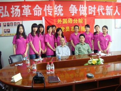 5月15日,为纪念中国共产党诞辰九十周年,浙江大学宁波理工学院外国语分院的党员志愿者小分队一行10名学生党员,早早地来到宁波军分区干休所,慰问那些为了祖国奉献一生的老干部们。慰问以后,党员志愿者小分队与老干部黄斌爷爷进行了座谈。参加这次活动的还有干休所的纪献龙政委和周明文干事。通过慰问、座谈和家访,同学们收获颇多,加深了对我们党的认识,更加明确作为一名党员的历史使命。