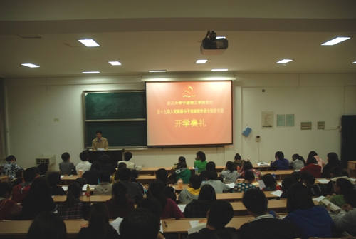 分院团委书记李炜老师宣读了本期党校的授课计划;教学班班主任陈印昌强调了党校教学管理的暂行规定;英语104班张婕同学作为学员代表发言。